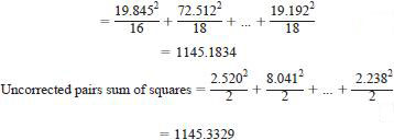 Ignoring any pairs in which there are estimated values, repeats sum of squares,