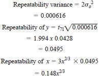 where r(x), r(y) are the corresponding repeatability functions (see Table A3.1). A similar relationship applies to the reproducibility functions R(x), R(y).