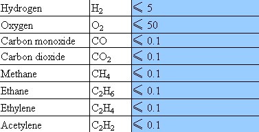 Dual injections of samples, three columns and argon(Ar) as carrier gas, nine dissolved gas compounds - hydrogen(H2), oxygen(O2), nitrogen(N2), carbon monoxide(CO), carbon dioxide(CO2), methane(CH4), ethane(C2H6), ethylene(C2H4) and acetylene(C2H2) - are analyzed.