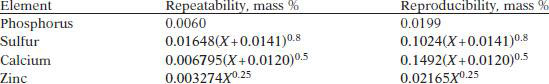 INTERFERENCES - The additive elements found in lubricating oils will affect the measured intensities from the elements of interest to a varying degree. In general, for lubricating oils, the X-radiation emitted by the elements of interest can be absorbed by itself (self-absorption) or by the other elements present in the sample matrix. Also, the X-radiation emitted from one element can further excite (enhance) another element. These interelement effects are significant at concentrations varying from 0.03 mass % 5, due to the heavier elements, to 1 mass %, for the lighter elements. Enhancement effects can be minimized by selective excitation. The measured concentration for a given element can be mathematically corrected for self-absorption and for interelement effects by other elements present in the sample matrix. If an element is present at significant concentrations and an interelement correction for that element is not employed, the results can be low due to absorption or high due to enhancement.