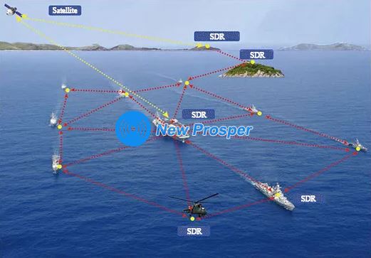 In response to the maritime wireless communication environment, vessels equipped with SDRs can rapidly establish a broadband wireless network characterized by high reliability, high mobility, strong survivability, anti-jamming capability, and over-the-horizon transmission. This ensures flexible networking and multi-hop transmission among ships and between aircraft and ships within the fleet, providing users with secure, reliable, stable, and timely comprehensive multimedia transmission services including voice, data, and video.